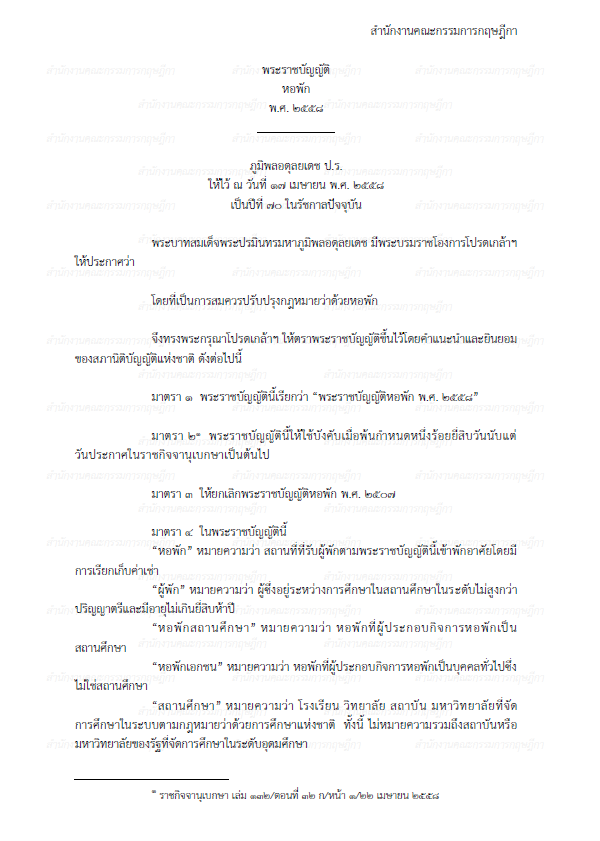 พระราชบัญญัติหอพัก พ.ศ. 2558
