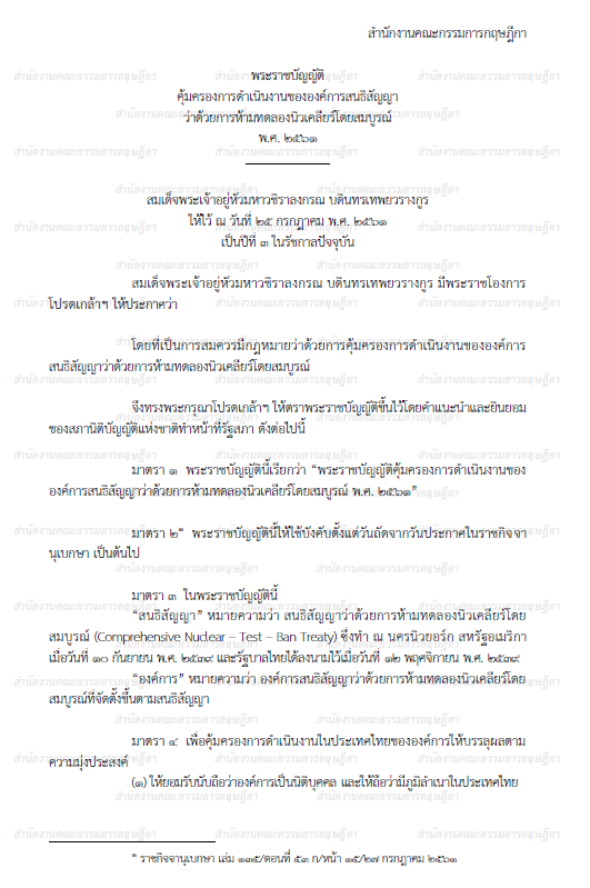 พระราชบัญญัติคุ้มครองการดำเนินงานขององค์การสนธิสัญญาว่าด้วยการห้ามทดลองนิวเคลียร์โดยสมบูรณ์ พ.ศ. 2561