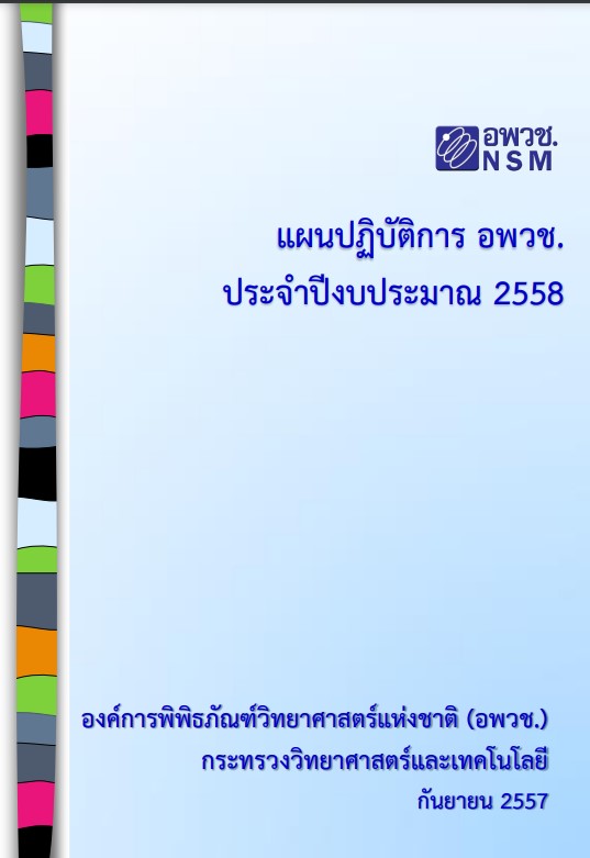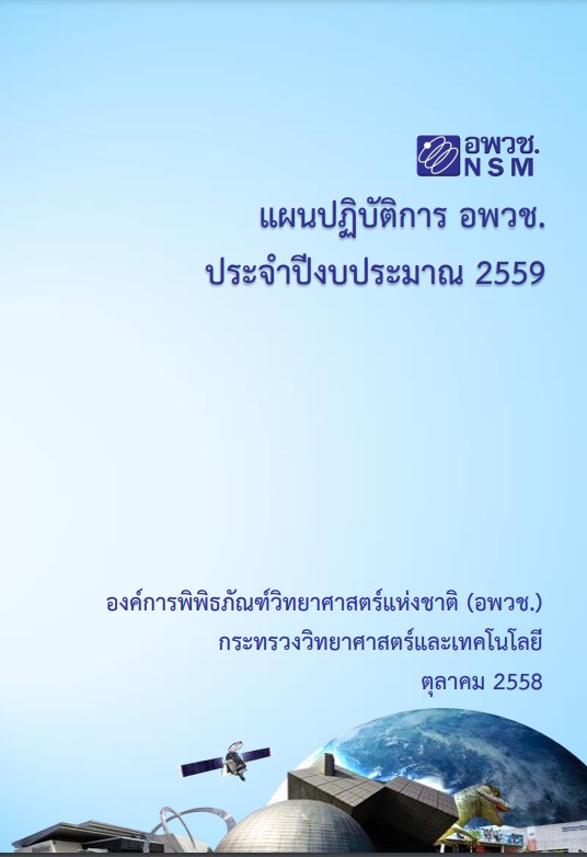 แผนปฏิบัติการ อพวช. ประจําปีงบประมาณ 2558 ฉบับนี้ จัดทําขึ้น เพื่อใช้ในการบริหารงานงบประมาณประจําปีของ อพวช. ตามที่ได้รับจัดสรรจากรัฐบาล และเงินรายได้ที่คาดว่าจะหาได้ในปีงบประมาณ 2558 -