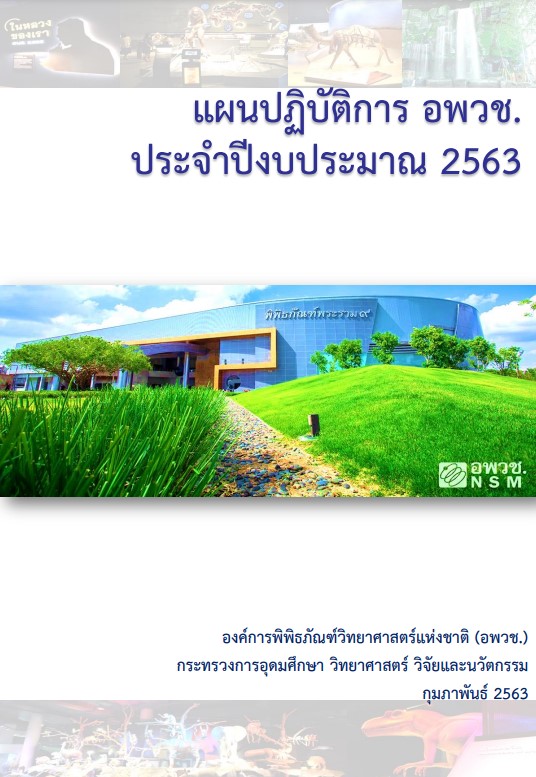 แผนปฏิบัติการ อพวช. ประจำปี 2564 ฉบับปรับปรุง ฉบับนี้ ปรับปรุงเพื่อให้สอดคล้องกับแผนการจัดสรรงบประมาณของสำนักงบประมาณ เพื่อใช้เป็นแนวทางในการปฏิบัติให้เป็นทิศทางเดียวกัน -