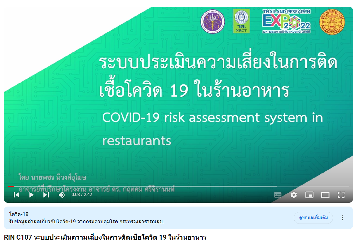RIN C107 ระบบประเมินความเสี่ยงในการติดเชื้อโควิด 19 ในร้านอาหาร