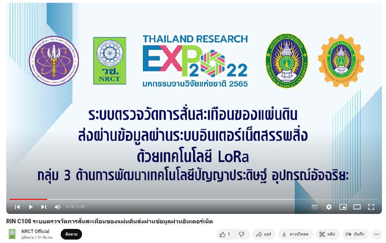 RIN C108 ระบบตรวจวัดการสั่นสะเทือนของแผ่นดินส่งผ่านข้อมูลผ่านอินเตอร์เน็ต
