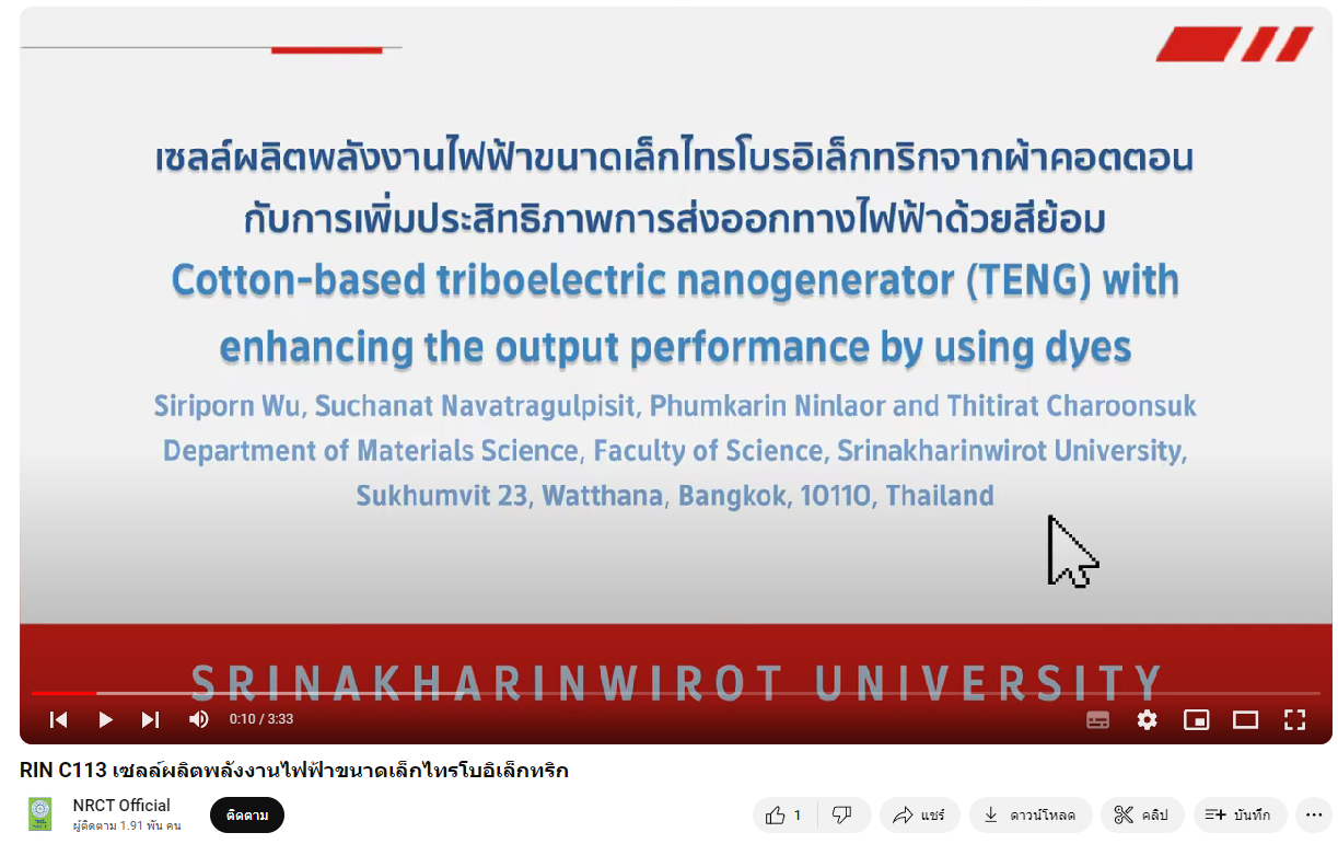 ผลงานสายนวัตกรรมอุดมศึกษา ประจำปี 2565 ด้านการพัฒนาเทคโนโลยี ปัญญาประดิษฐ์ อุปกรณ์อัจฉริยะ: เซลล์ผลิตพลังงานไฟฟ้าขนาดเล็กไทรโบอิเล็กทริก