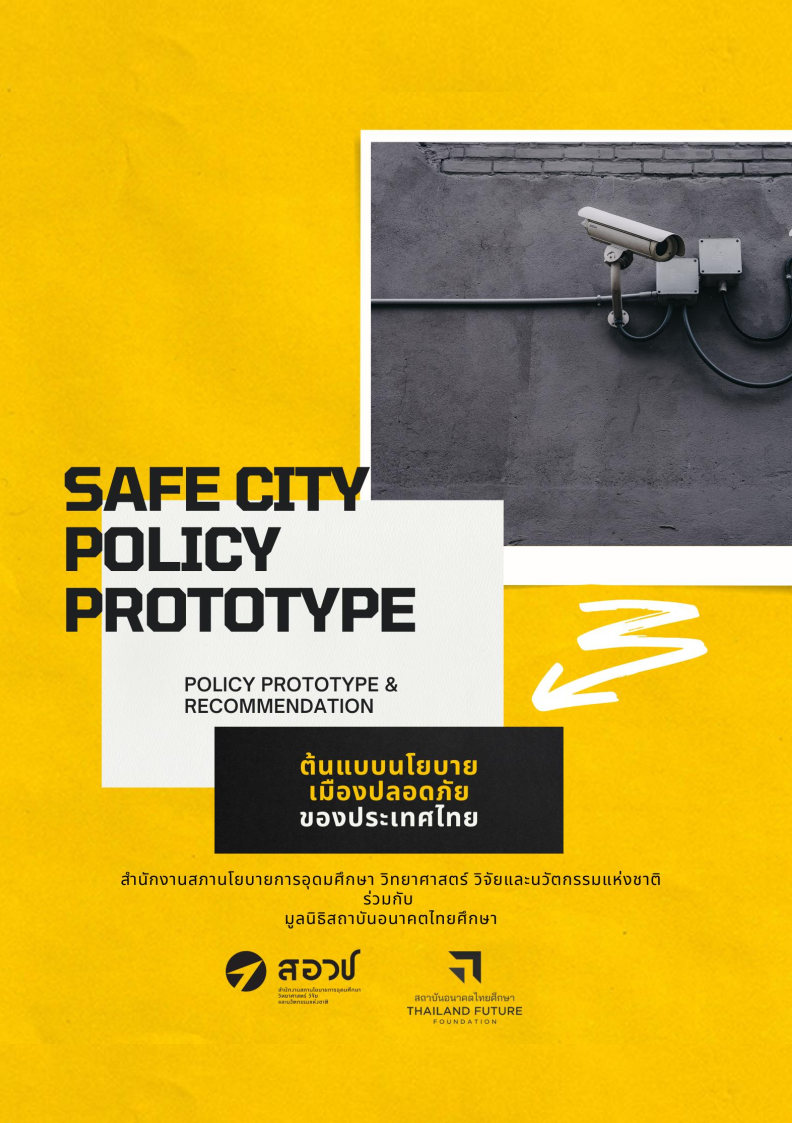 รายงาน SAFE CITY POLICY PROTOTYPE : ต้นแบบนโยบายเมืองปลอดภัยของประเทศไทย เกิดจากความร่วมมือของ สอวช. กับ มูลนิธิสถาบันอนาคตไทยศึกษา (Thailand Future Foundation : TFF) นำเสนอการดำเนินการจัดทำโครงการต้นแบบนโยบายเมืองปลอดภัยของประเทศไทย และได้รับความร่วมมือจากสำนักงานตำรวจแห่งชาติ (สตช.) ในการพัฒนาต้นแบบนโยบายเมืองปลอดภัยที่เหมาะสมสำหรับประเทศไทย โดยนำกระบวนการ Design thinking เข้ามาเป็นเครื่องมือในการพัฒนานโยบายบนพื้นฐานของการมีส่วนร่วม (Co-Creation) ตลอดจนออกแบบนโยบายบนพื้นฐานของข้อมูลหลักฐานเชิงประจักษ์ (Evidence-based Policy) โดยรวมความคิดเห็นจากทุกภาคส่วน ผสานกับนวัตกรรม ความสร้างสรรค์ ส่งต่อนโยบายเพื่อขับเคลื่อนนโยบายที่ตอบสนองความต้องการของประชาชนอย่างแท้จริง