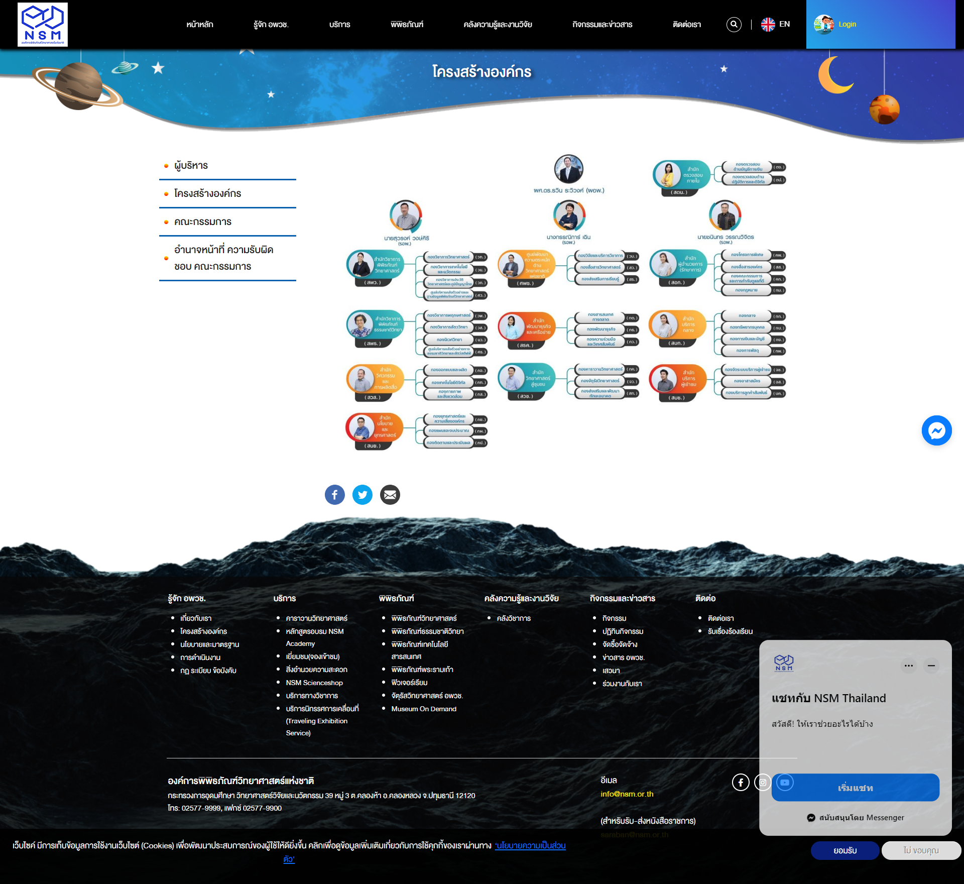 แผนผังโครงสร้างองค์กรองค์การพิพิธภัณฑ์วิทยาศาสตร์แห่งชาติ (อพ.)